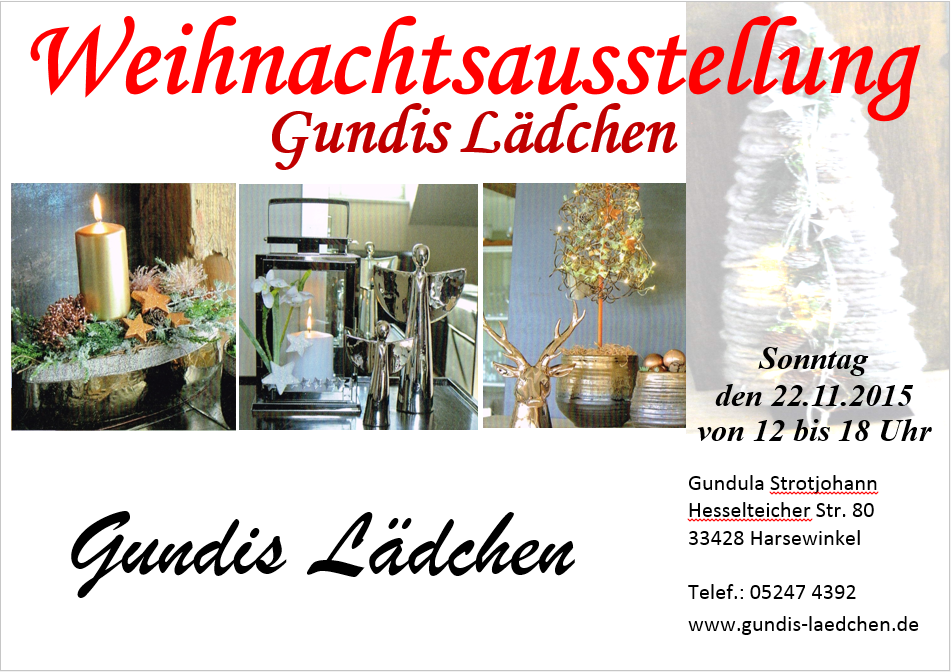 Gundis Lädchen, Inh. Gundula Strotjohann, Hesselteicher Str. 80, 33428 Harsewinkel, Tel.:05247/4392